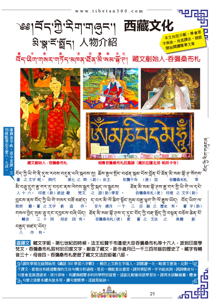 21 བོད་ཡིག་གསར་གཏོད་མཁན་ཐོན་མི་སམ་བྷོ་ཊ། 藏文創始人-吞彌桑布札