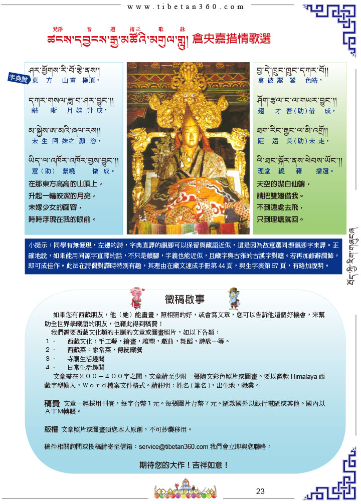 23 ཚངས་དབྱངས་རྒྱ་མཚོའི་མགུལ་གླུ། 倉央嘉措情歌選